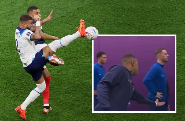 卡爾獲加(Kyle Walker)該仗的責任,是封鎖及死纏在今屆世盃大勇的安巴比(Kylian Mbappe),而他賽前也發表過「不會為對方開紅地氈」的言論,原來未上場前在球員通道已「說到做到」。